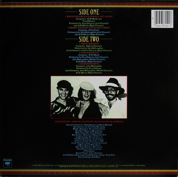 | B2 | Paco DeLucia*, John McLaughlin, Al Di Meola– | Fantasia Suite | 8:50 |